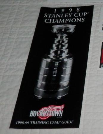 Here are a few great items from the 1998 Detroit Red Wings Training Camp held in Traverse City, Michigan. This is a colorful lapel pin with a post style back. Approximate size is 1"x1". Each pin is still in its original plastic sealed packaging (I took the one I photographed out of its packaging to show it better). Also a nice Media Guide from the camp. Great item for the Wings collector of oddball items! I'll throw in a pair of full unused tickets to the 1998 and 1999 Training Camps as well. Can ship if you are not in the TC area: show contact info