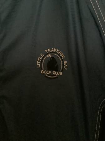 Sun Mountain Outerware. Unlined 100% Polyester. 2 front zippered pockets. Monogramed “Little Traverse Bay Golf Club” Like new. $3.00